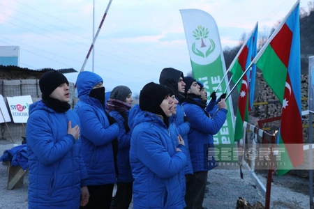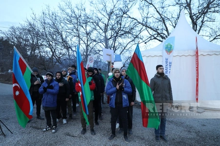 Soyuq və şaxtalı hava şəraitinin müşahidə olunmasına baxmayaraq, Azərbaycanın Qarabağ iqtisadi rayonunda faydalı qazıntı yataqlarının qanunsuz istismarına qarşı Xankəndi-Laçın yolunda keçirilən etiraz aksiyası əlli yeddi gündür davam edir.