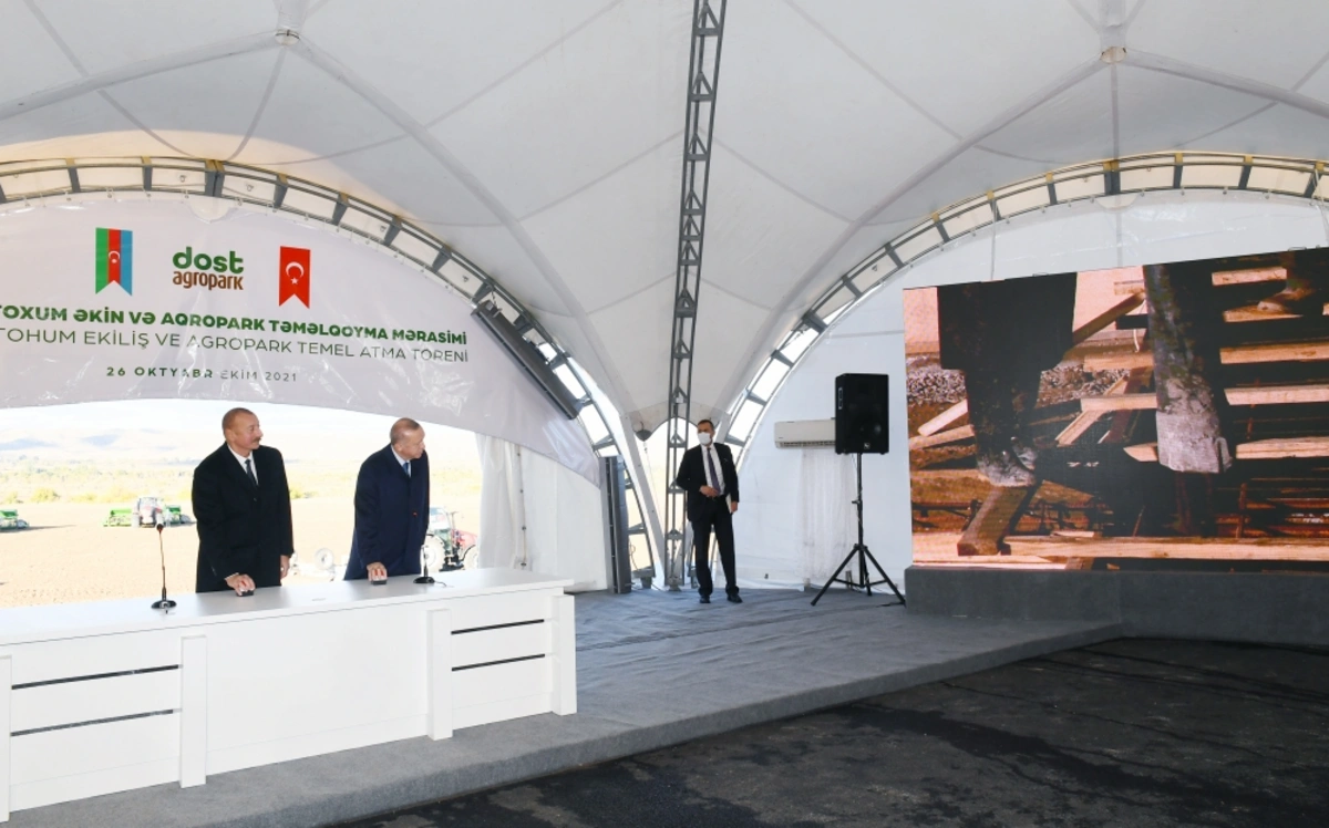 Azərbaycan Respublikasının Prezidenti İlham Əliyev və Türkiyə Respublikasının Prezidenti Rəcəb Tayyib Ərdoğan oktyabrın 26-da Zəngilan rayonunda “Dost Aqropark”ın təməlini qoyublar.