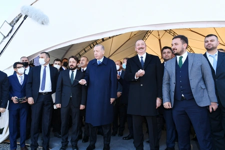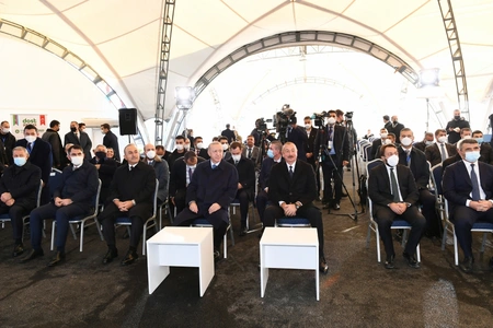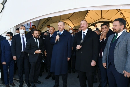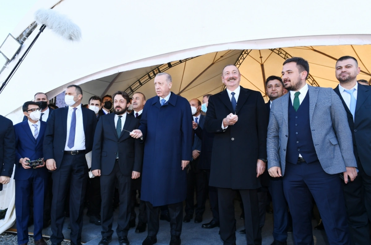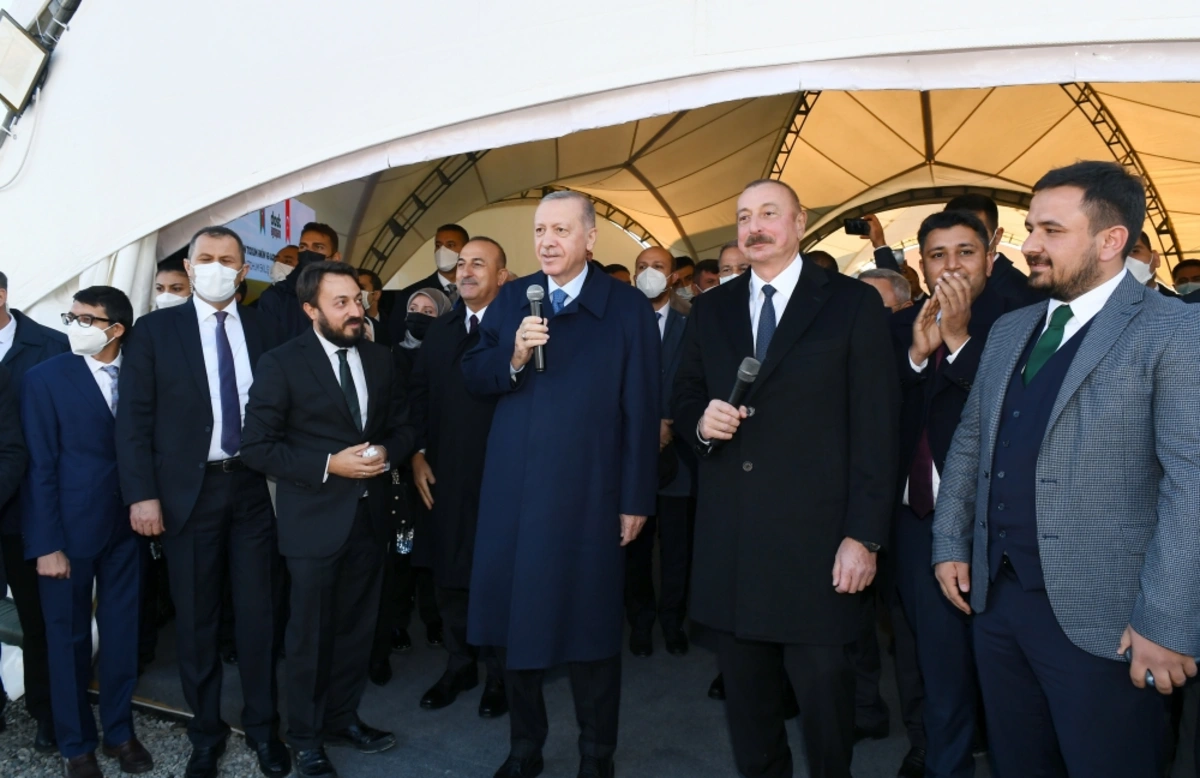 Cənab prezidentlər və əziz qonaqlar. Bildiyimiz kimi, bu torpaqlar 27 il ərzində erməni vandalları tərəfindən tar-mar olundu, daş üstündə daş qalmadı. Evlərimiz talan olundu. O evlərdən biri də mənim evim idi. 27 ildən sonra öz torpağıma qayıdarkən evimin bir daşını belə tapa bilmədim. Nəinki evlərimiz, meşələrimiz, ağaclarımız tar-mar olundu. 27 ildən sonra biz qardaş Türkiyə ilə əl-ələ verib bu torpaqları yenidən ayağa qaldırırıq. Bu torpaqlara yenidən can verməyə gəlmişik, viran qalmış torpaqlarımızı cənnətə çevirməyə gəlmişik.