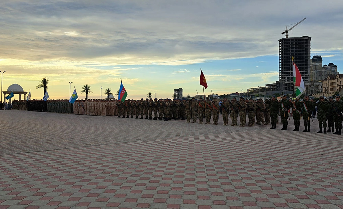 Sonra Azərbaycan, Qazaxıstan, Qırğızıstan, Tacikistan və Özbəkistan respublikalarının təlimdə iştirak edən hərbi qulluqçularının təntənəli keçidi olub.