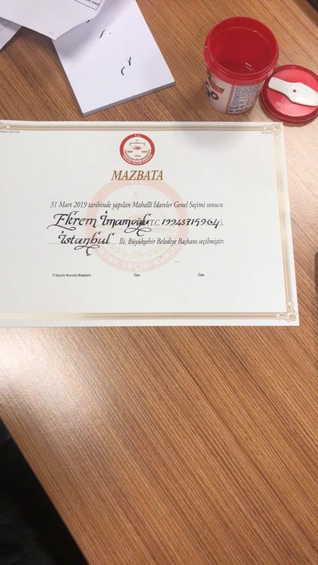 İstanbulun Əyalət Seçki Komissiyası Türkiyənin müxalif Cümhuriyyət Xalq Partiyasının (CHP) namizədi Əkrəm İmamoğluna İstanbul Böyük Şəhər Bələdiyyəsinin sədri vəsiqəsinin təqdim edilməsi barədə qərar qəbul edib.