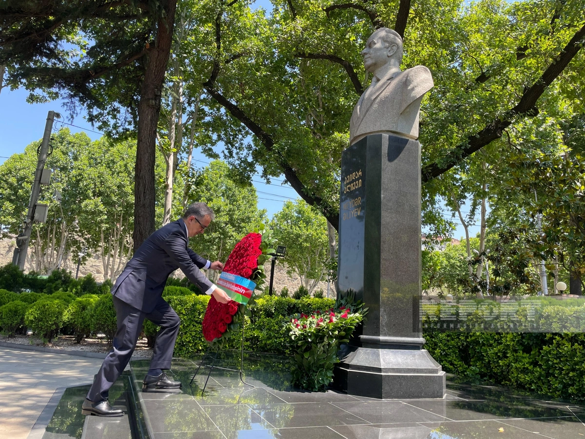 "Report"un yerli bürosu xəbər verir ki, iyunun 12-də nümayəndə heyəti Tbilisinin mərkəzindəki Heydər Əliyev parkında Azərbaycan xalqının Ümummilli Liderinin abidəsini ziyarət edib. Ulu Öndərin abidəsi önünə əklil qoyulub, xatirəsi ehtiramla yad edilib.