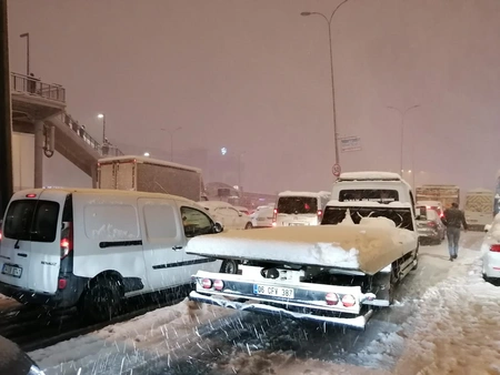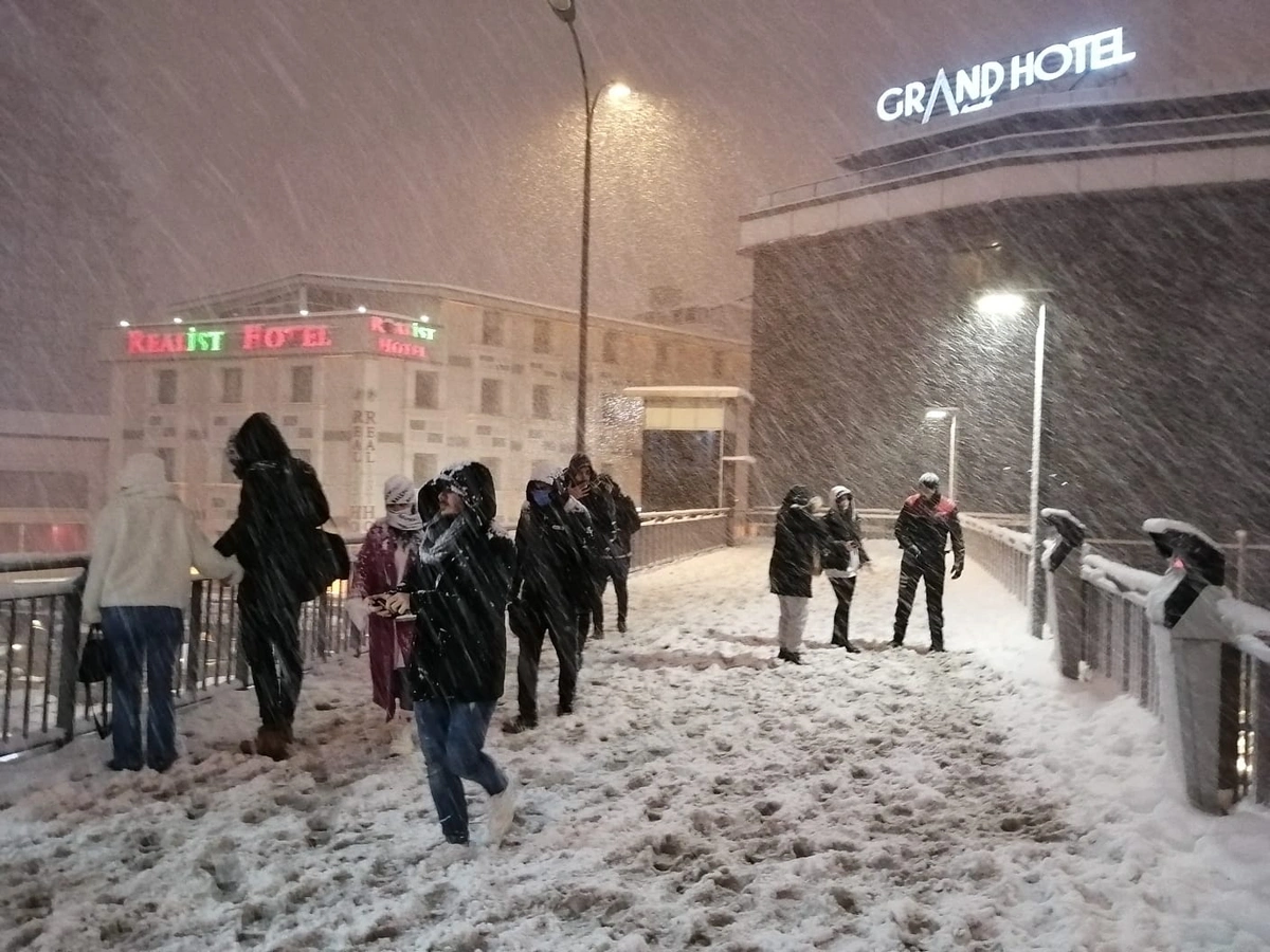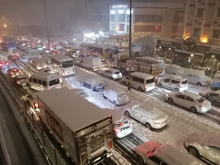 "Report"un yerli bürosu xəbər verir ki, xüsusilə şəhərin Bahçelievler, Beşiktaş, Küçükçekmece, Beylikdüzü, Çatalca, Kadıköy, Büyükçekmece, Esenyurt rayonlarında şiddətli qar yağışı yolun hərəkət hissəsində avtoqəzalara səbəb olub. Əlverişsiz hava habelə nəqliyyatın hərəkətinə məhdudiyyətlər yaradıb.