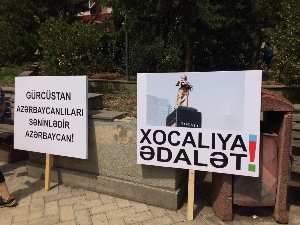Aksiyada Azərbaycan dövlətinə və Ordusuna dəstək, "Qarabağ Azərbaycandır!", "Hamımız İlqarıq" (şəhid İlqar Mirzəyev-red.) şüarları səsləndirilir. İştirakçılar Gürcüstan ərazilərinin işğal altında saxlanılmasını da qınayırlar.