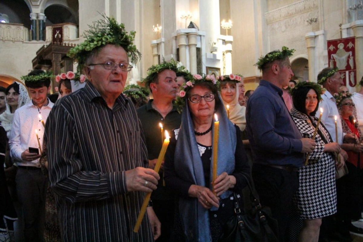 Nikah mərasimi 120-dən çox cütlük üçün Tbilisidəki Müqəddəs Üçlük kilsəsində təşkil olunub.