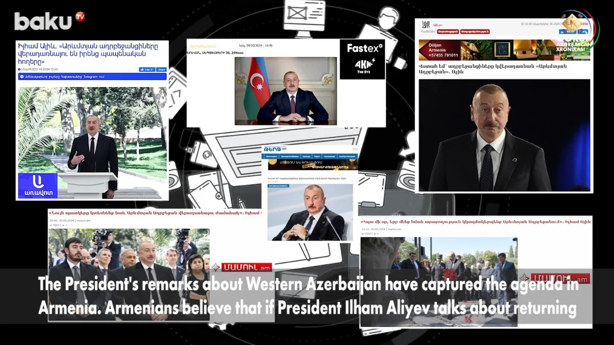 Süjetdə diqqətə çatdırılır ki, Prezident İlham Əliyevin Qərbi Azərbaycanla bağlı dedikləri Ermənistanda gündəmi zəbt edib. Qafqaz üzrə erməni ekspert Karen İgitay hesab edir ki, azərbaycanlılar Ermənistana (Qərbi Azərbaycana) adi vətəndaş kimi yox, xüsusi statusa malik olan insanlar kimi gələcəklər.
