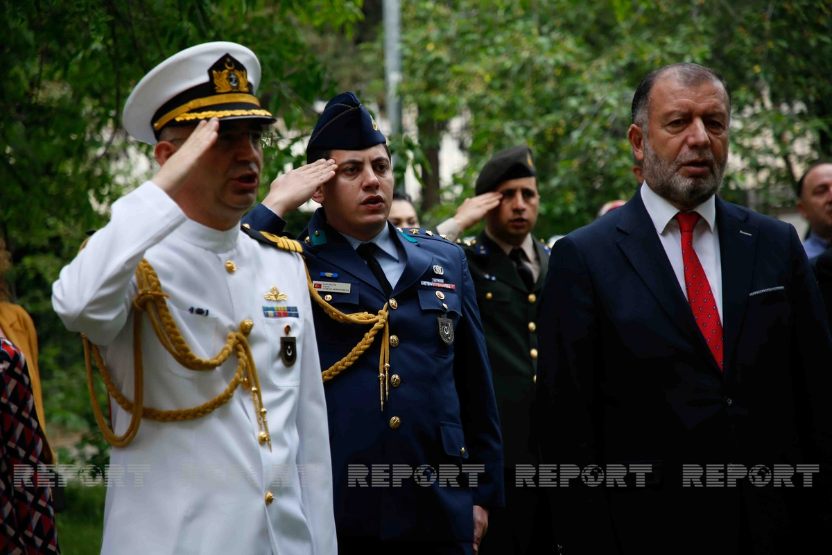 Türkyə səfirliyində təşkil olunan bayram tədbirində ilk öncə dövlət himni səsləndirilib, şəhidlərin xatirəsi bir dəqiqəlik sükutla yad edilib. Diplomatik nümayəndəliyin əməkdaşları və mərasim iştirakçıları “Gənclik”, “Mülkiye” və “İleri” marşlarını oxuyublar.