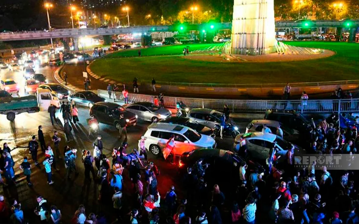 Gürcüstanın paytaxtı Tbilisidə parlament yaxınlığındakı mitinqdən sonra “Qəhrəmanlar” meydanına keçən aksiya iştirakçıları yolu bağlayıblar.
