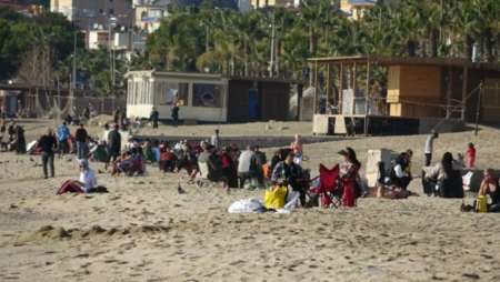 Havanın hərarətinin mövsümi normadan yüksək olduğu Türkiyənin Antalya vilayətində çimərliklərdə insanların sıxlığı müşahidə edilir.