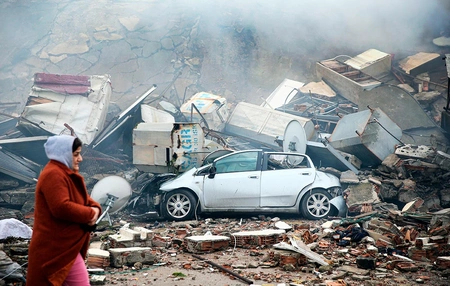 Türkiyədə zəlzələnin baş verdiyi ərazilərdə dağıntılar var.