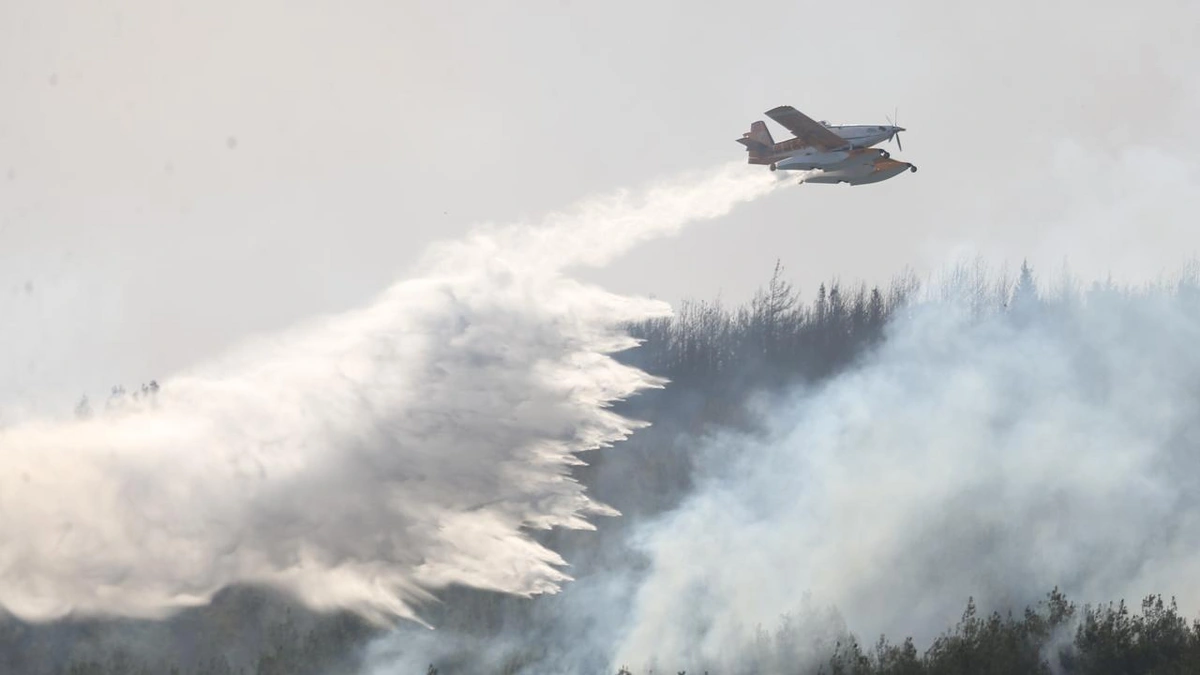 Yanğınla mübarizəyə 12 təyyarə, 12 helikopter, yüzə yaxın quru texnikası və 560 nəfərdən ibarət canlı qüvvə cəlb edilib.
