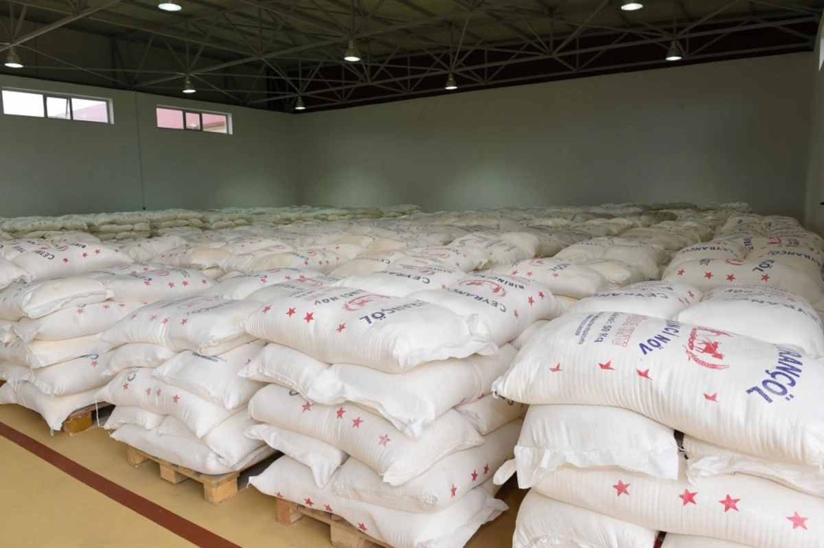 Президент Ильхам Алиев был проинформирован о хранящихся в складе площадью 5048 квадратных метров для продажи нескольких разновидностях муки, грубых кормов и готовых семян.