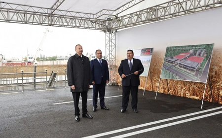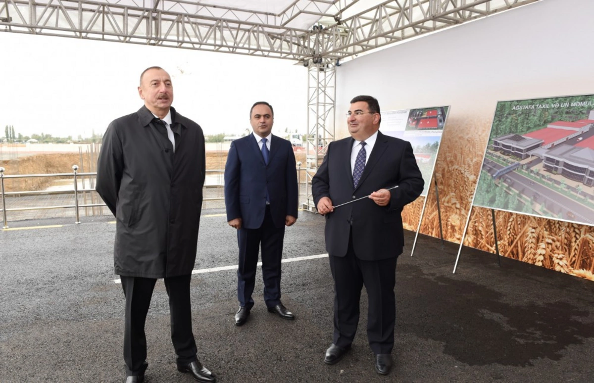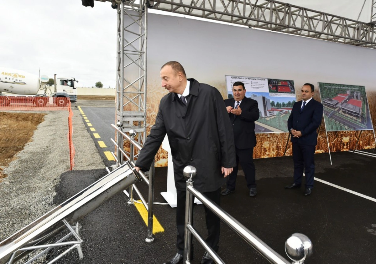 Президент Ильхам Алиев заложил фундамент новой мельницы.