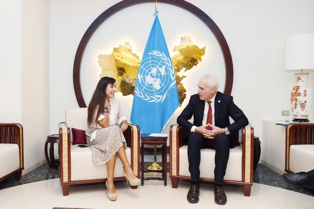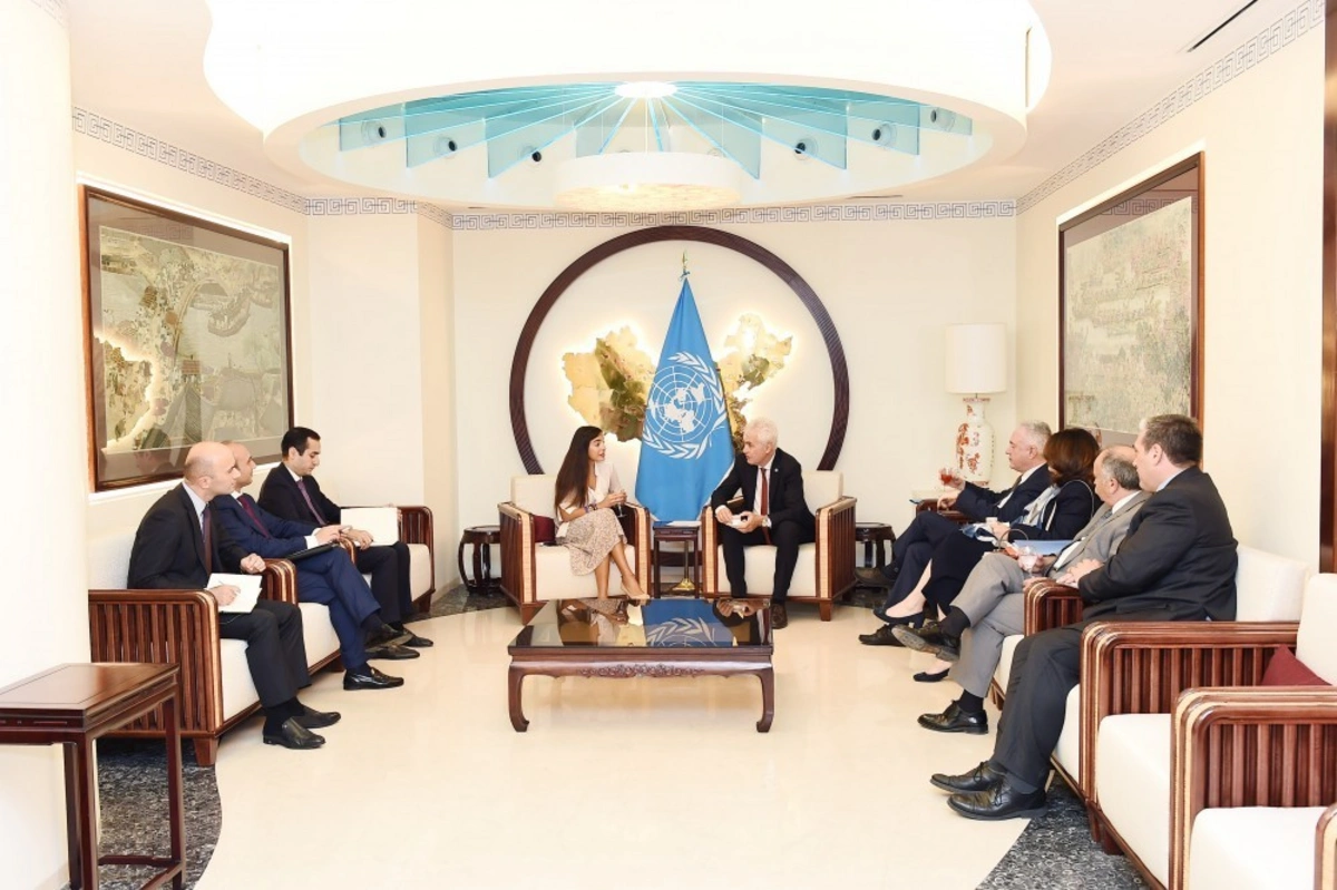 Вначале состоялась встреча вице-президента Фонда Гейдара Алиева Лейлы Алиевой с заместителем генерального директора Продовольственной и сельскохозяйственной организации ООН Лаурентом Томасом.