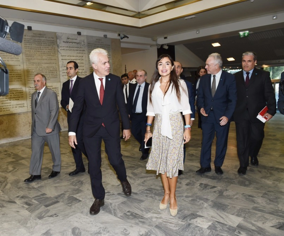 Хочу выразить Вам признательность за созданную возможность. Когда Мы разрезали ленту, символизирующую открытие, я подумала, что это означает новое и особенное начало. Верю, что это открытие олицетворяет вступление в новый этап наших отношений с ФАО. Наличие частицы Азербайджана в главном офисе ФАО, отражение здесь азербайджанской культуры и национального духа, несомненно, воодушевит приходящих сюда людей посетить нашу прекрасную страну, поближе узнать наш гостеприимный народ. Уверена, что этот офис привнесет много позитивных изменений в наш мир. Большое спасибо.