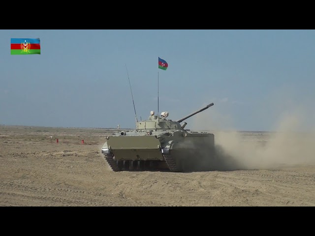 Экипажи БМП азербайджанской армии выполняют боевые стрельбы