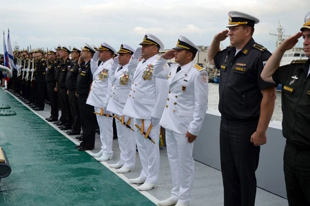 В российском порту Каспийск состоялась торжественная церемония встречи военных моряков Азербайджана.