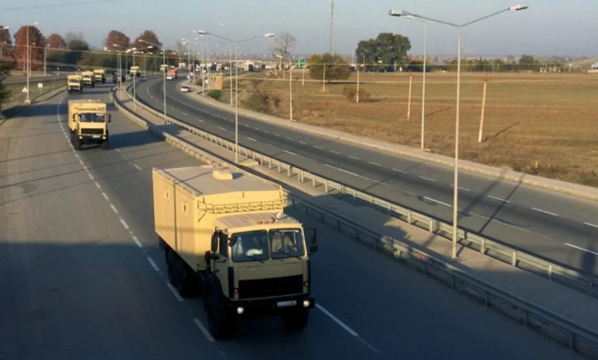 Безопасность передвижения колонн от нападения условного противника обеспечивается авиационными средствами ВВС.