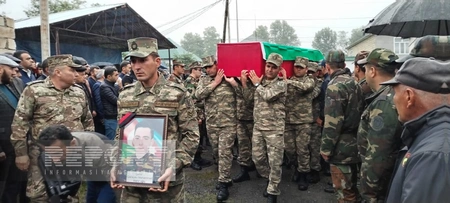 В доме шехида проходит церемония прощания, в которой помимо членов семьи и близких шехида, принимают участие руководители и представители районной исполнительной власти, правоохранительных органов, управлений и организаций, жители Габалинского района.