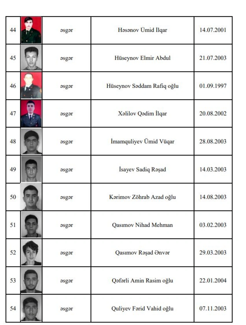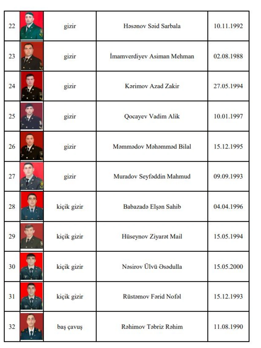 Report представляет список со ссылкой на министерство обороны Азербайджана.