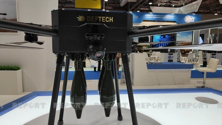 На IV Азербайджанской международной выставке обороны ADEX демонстрируется разработанный в Азербайджане дрон-миномет "Овчу".