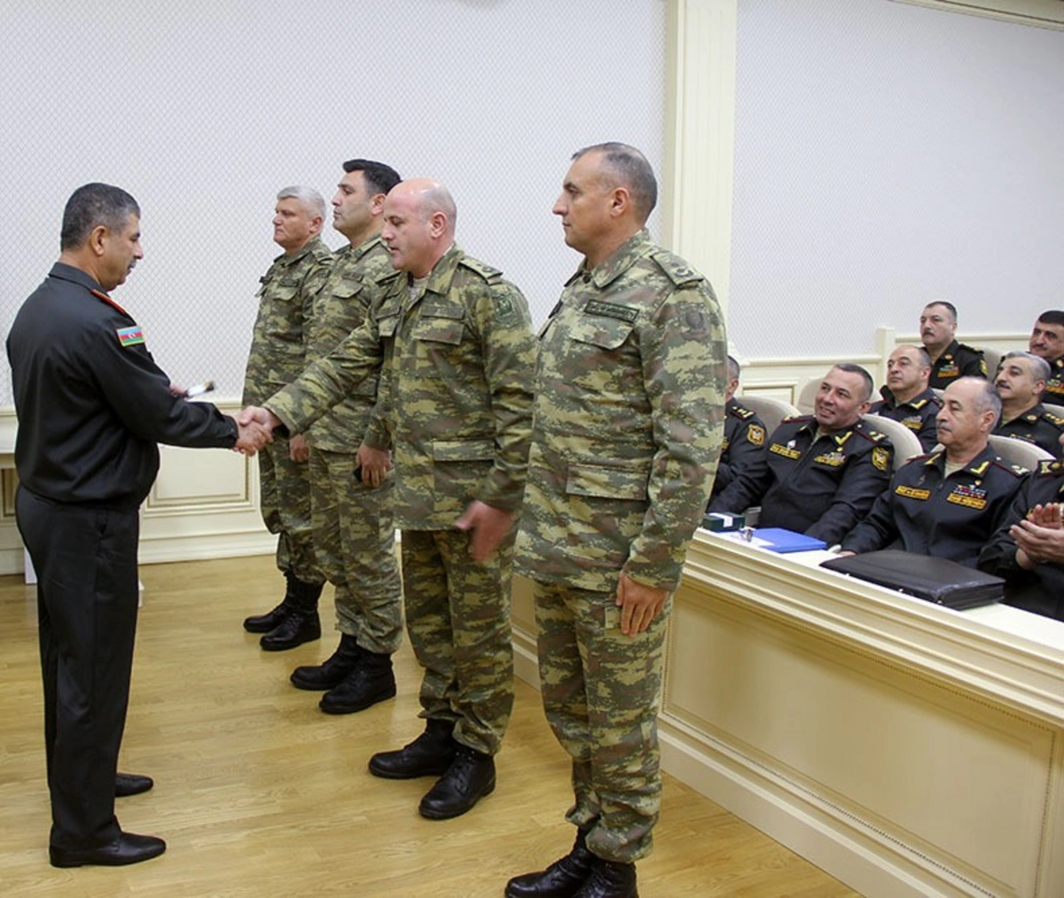 Согласно приказу министра обороны, военнослужащие, отличившиеся по итогам боевой подготовки в 2018-ом учебном году, были награждены и им были вручены ценные подарки. Группе офицеров было присвоено очередное звание "полковник".