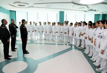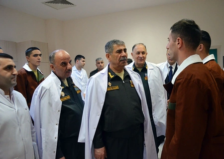 Генерал-полковник З.Гасанов поздравил медицинских работников с праздником и дал поручения по совершенствованию и еще более качественной организации услуг, оказываемых проходящим обследование и лечение военнослужащим.