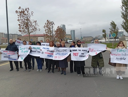 Участники акции требуют извинений Паллоне перед азербайджанским народом, возбуждения уголовного дела в отношении его охранников, допустивших насилие во время вчерашней мирной акции, ответа конгрессмена за клеветнические кампании против Азербайджана.
