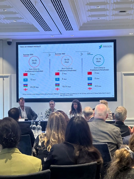 В своем выступлении посол Азербайджана в Великобритании Элин Сулейманов подчеркнул важность Среднего коридора как мультимодального транспортного коридора и сказал, что образцовое сотрудничество между Азербайджаном и Грузией при поддержке Турции в свое время сыграло большую роль в развитии данного проекта.