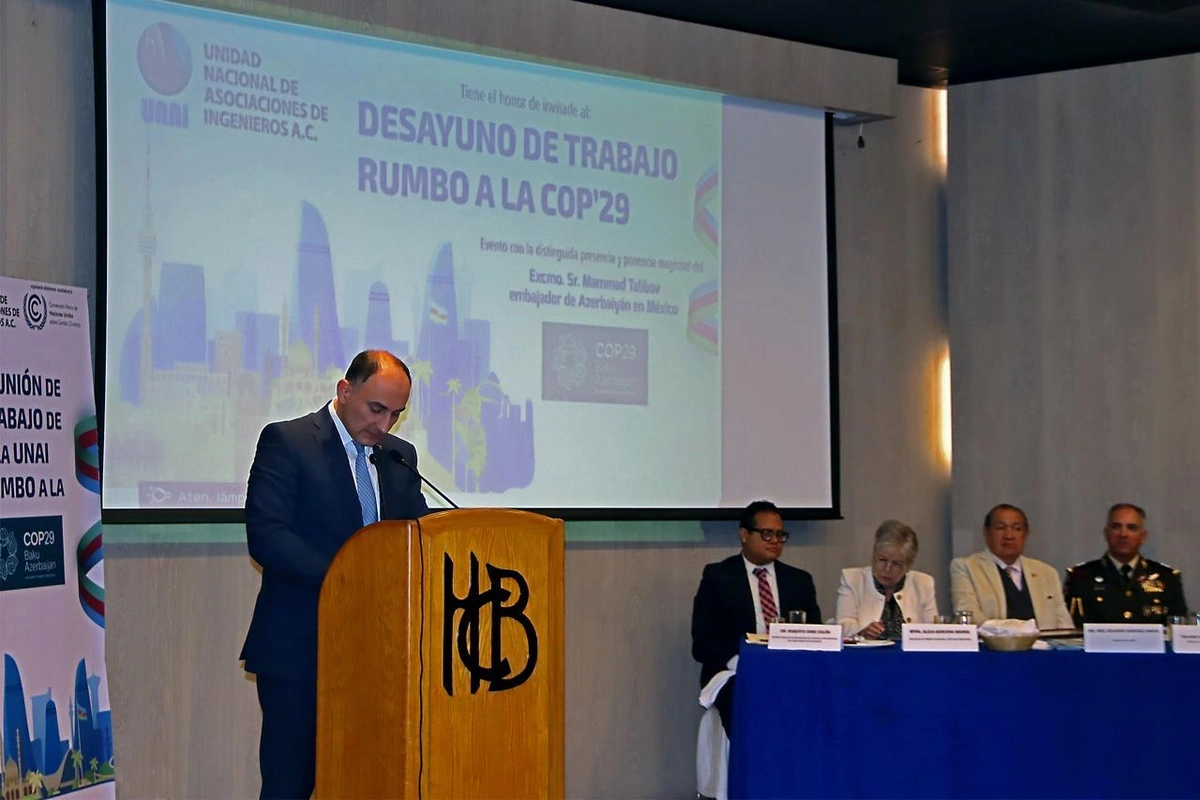 Посол Азербайджана в Мексике Мамед Талыбов выступил с докладом о проведении COP29 в Азербайджане на мероприятии, организованном Национальным союзом ассоциаций инженеров (Unidad Nacional de Asociaciones de Ingenieros).