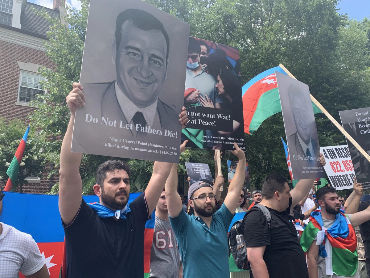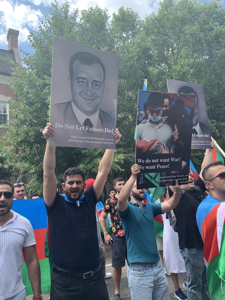 В столице США, Вашингтоне, состоялась акция протеста перед посольством Армении в связи с совершенной провокацией на государственной границе с Азербайджаном со стороны армянских ВС и агрессией Армении против нашей страны, продолжающейся более чем 30 лет.