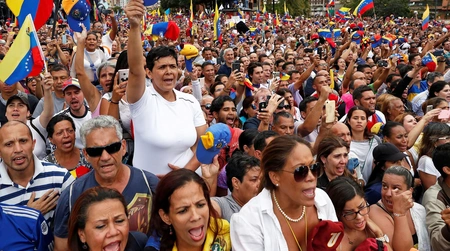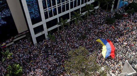 Председатель парламента Венесуэлы и лидер оппозиции Хуан Гуайдо в среду объявил себя исполняющим обязанности главы государства во время митинга в Каракасе.
