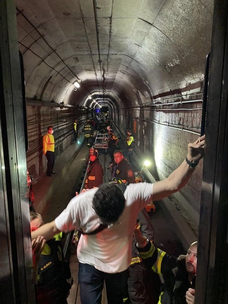 Пользователи соцсети сообщают, что в сошедшем с рельсов поезде отключился свет, пассажирам пришлось пробыть там около полутора часов, их будут выводить группами.