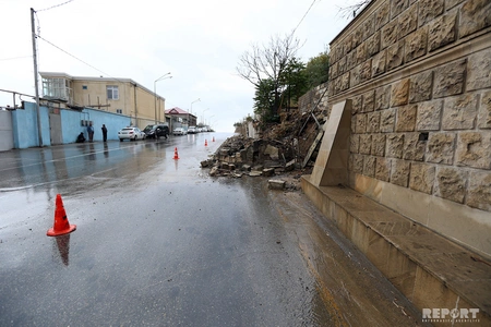 Как сообщает Report, на Биби-Эйбатской дороге (вблизи мечети "Биби-Эйбат") во время оползня обрушилась часть подпорной стены.