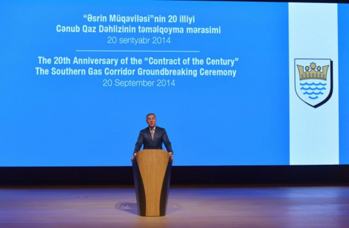 Баку. 22 сентября. REPORT.AZ/ 20 сентября в Баку, в Центре Гейдара Алиева состоялась торжественная церемония, посвященная 20-летию "Контракта века" и закладке фундамента Южного газового коридора. Как сообщает Report, президент Азербайджана выступил на церемонии. Глава государства отметил, что этот день является очень знаменательным, историческим днем в жизни Азербайджана, поскольку закладывается фундамент Южного газового коридора.
