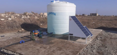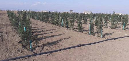 Министерство экономики Азербайджана установило систему капельного орошения, которая работает на солнечной энергии в лесной полосе Агдамского промышленного парка.