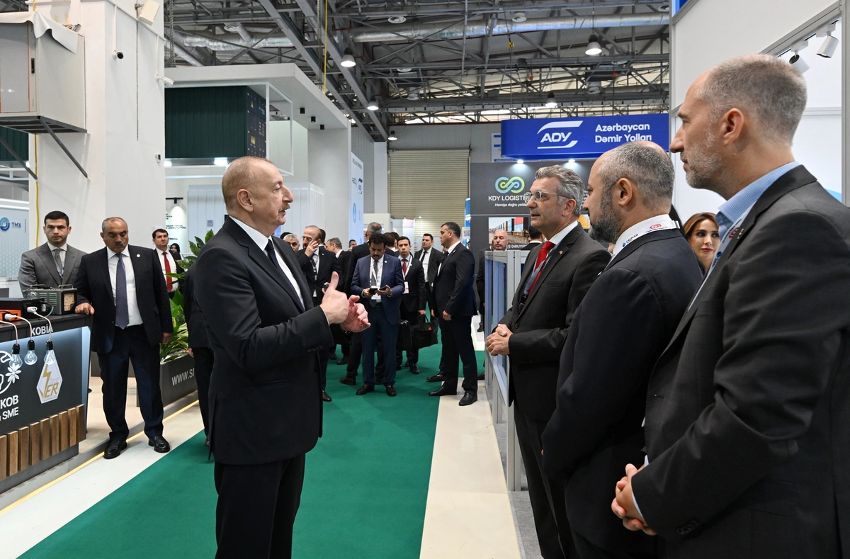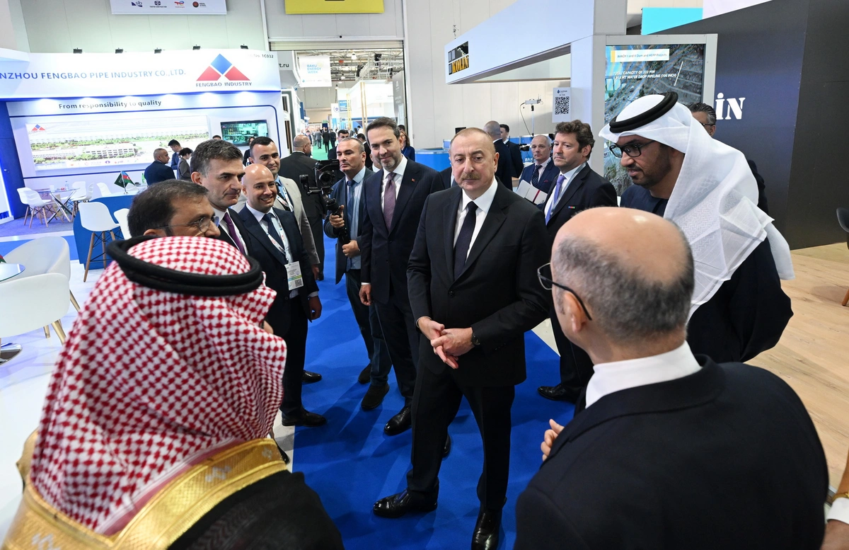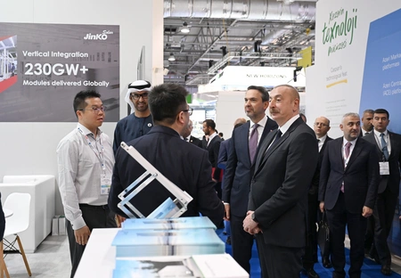 Президент Ильхам Алиев ознакомился со стендом компании ACWA Power Королевства Саудовская Аравия. Было отмечено, что ACWA Power является конструктором, инвестором и оператором эксплуатируемых, строящихся и совершенствуемых гидростанций по производству энергии и опреснению. Она владеет 82 активами в 13 странах. В ACWA Power работают более 4000 человек. В портфеле ACWA Power – проекты производственной мощностью 55,1 ГВт и мощностью производства опресненной воды в объеме 8 миллионов кубометров в день. 29 февраля этого года компания подписала контракт по проекту Хызы-Абшеронской ветряной электростанции мощностью 240 МВт, являющейся крупнейшим проектом ветряной энергии в регионе Южного Кавказа. 3 мая нынешнего года компания также подписала Соглашение о реализации аккумуляторной системы хранения энергии мощностью 200 МВт. Это – первый в регионе Южного Кавказа проект аккумуляторной системы хранения энергии. Кроме того, в апреле 2024 года ACWA Power подписала с SOCAR соглашение о сотрудничестве, связанном с зелеными удобрениями.
