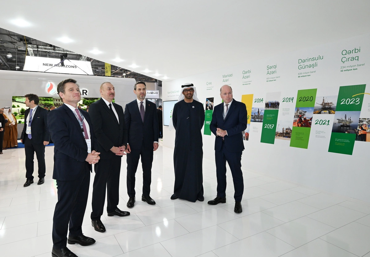 Президент Ильхам Алиев посмотрел стенд bp-Азербайджан. Компания bp является одним из самых известных поставщиков энергии в мире. bp, занимающаяся безопасной разработкой важных энергетических источников и добычей энергоресурсов предлагает людям различные решения в области энергетического обеспечения. В феврале 2020 года bp объявила о своей новой программе - цели "чистый ноль", планах по обновлению представлений об энергии для людей и нашей планеты. Компания bp работает в Азербайджане уже более 31 года, является оператором пяти крупных энергетических проектов. На сегодняшний день bp вместе с партнерами вложила в проекты в стране инвестиции в размере почти 84 миллиардов долларов и, создав десятки тысяч рабочих мест, осуществляя широкомасштабную социальную инвестиционную деятельность, оказала позитивное влияние на местные общины.