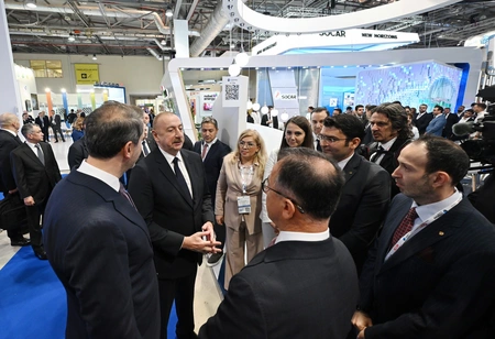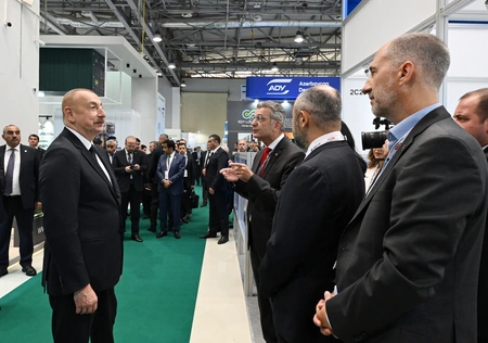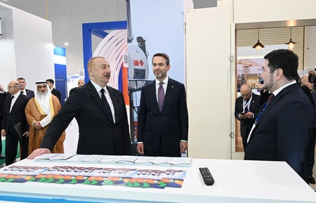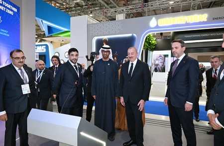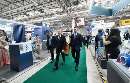 После этого глава государства ознакомился с Международной выставкой "Нефть и газ Каспия" - Caspian Oil&Gas и 12-й Каспийской международной выставкой "Энергетика и зеленая энергия" - Caspian Power.