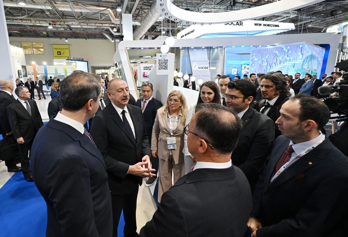 Глава государства также ознакомился со стендом TotalEnergies. Компания TotalEnergies работает в Азербайджане с 1996 года, владеет 35-процентной долей в газоконденсатном месторождении "Абшерон" и 5-процентной - трубопроводе БТД. Добыча в рамках первой фазы разработки газоконденсатного месторождения "Абшерон" началась в первой половине июля 2023 года. Ежедневная добыча составляет 4 миллиона кубометров газа и 12 тысяч баррелей конденсата. Газ реализуется на внутреннем рынке Азербайджана.