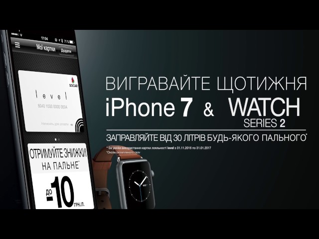 Как сообщает Report со ссылкой на Нефтерынок, в сети АЗС SOCAR с октября разыгрывает бонусы на карточку лояльности LEVEL (100, 200, 300, 500, 1000 еженедельно), шесть смартфонов Apple iPhone 7 Black 32 GB и семь часов Apple Watch Series 2 Space Gray Aluminum Case with Black Sport Band 38 mm.