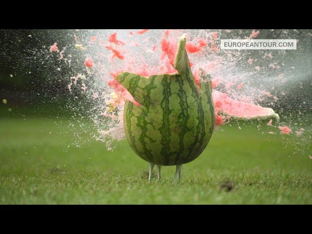 Профессиональный гольфист разрывает арбуз попаданием мяча - ВИДЕО
