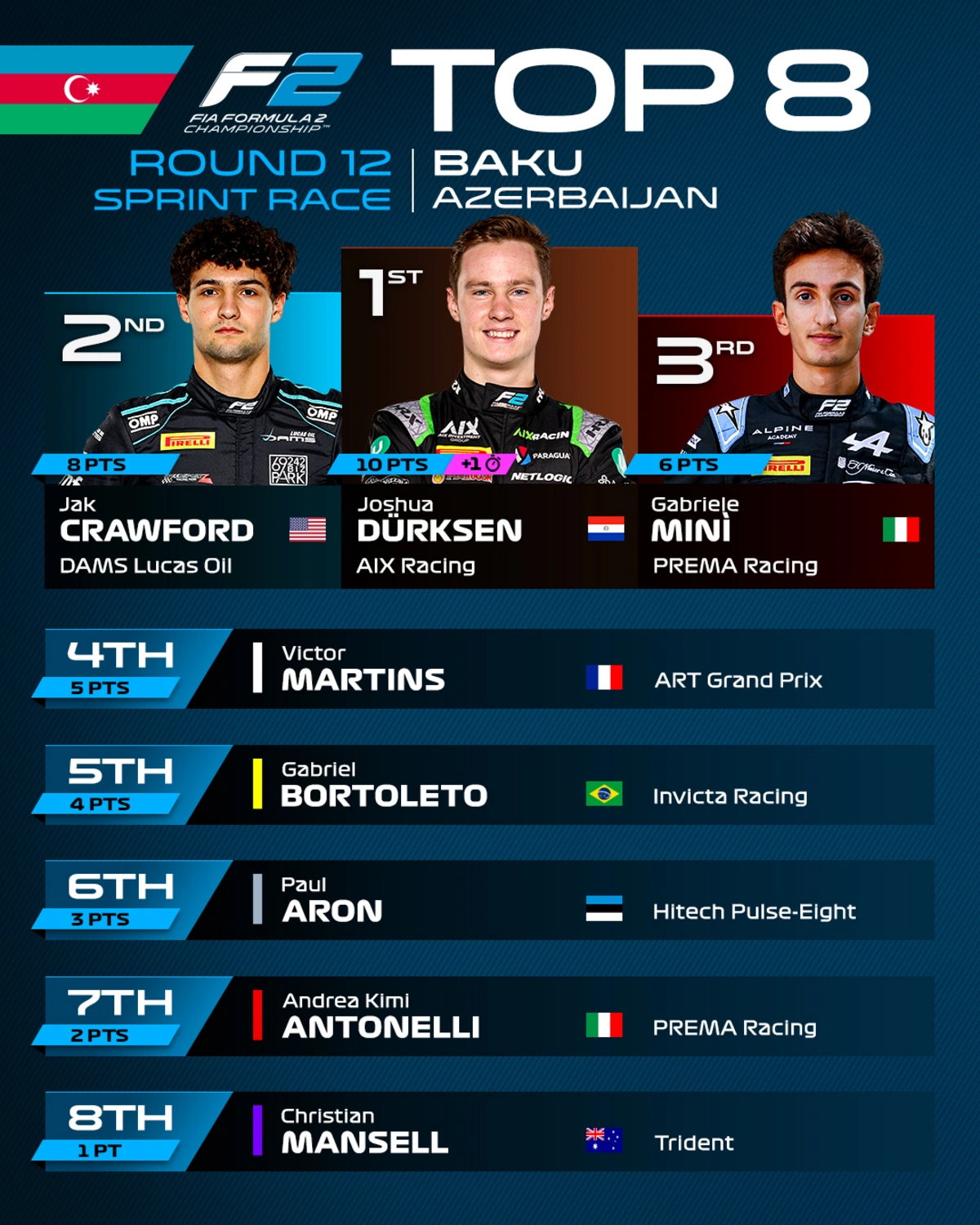 На Гран-при Азербайджана "Формулы 2" в Баку стартовала спринтерская гонка.