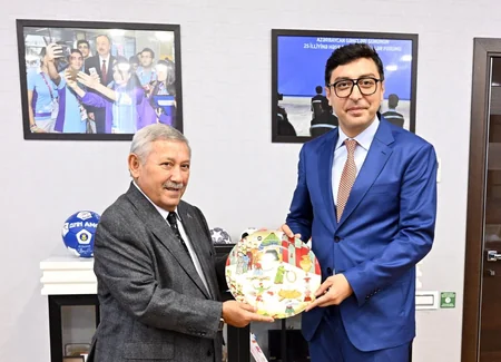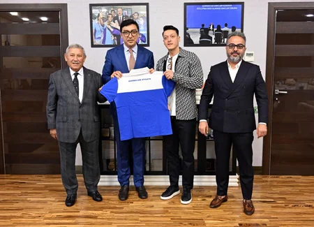 Министр молодежи и спорта Фарид Гаибов принял делегацию во главе с профессором Ирфаном Гюндюзом, находящуюся с визитом в Азербайджане, в состав которой вошел также чемпион мира 2014 года в составе сборной Германии Месут Озил.