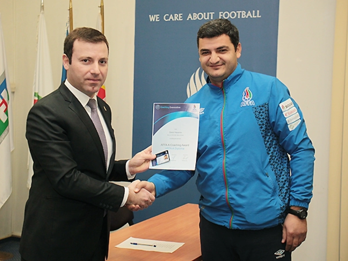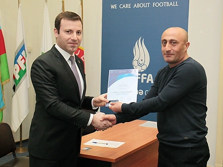 Баку. 30 января. REPORT.AZ/ Сегодня в административном здании АФФА специалистам, успешно завершившим курсы тренеров категории А, были представлены соответствующие дипломы.