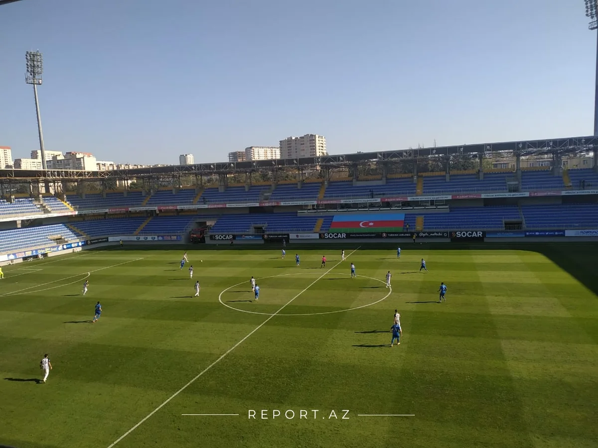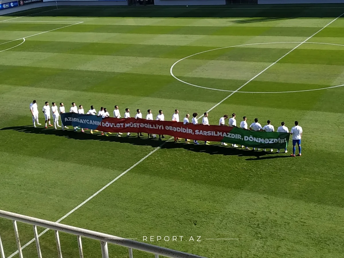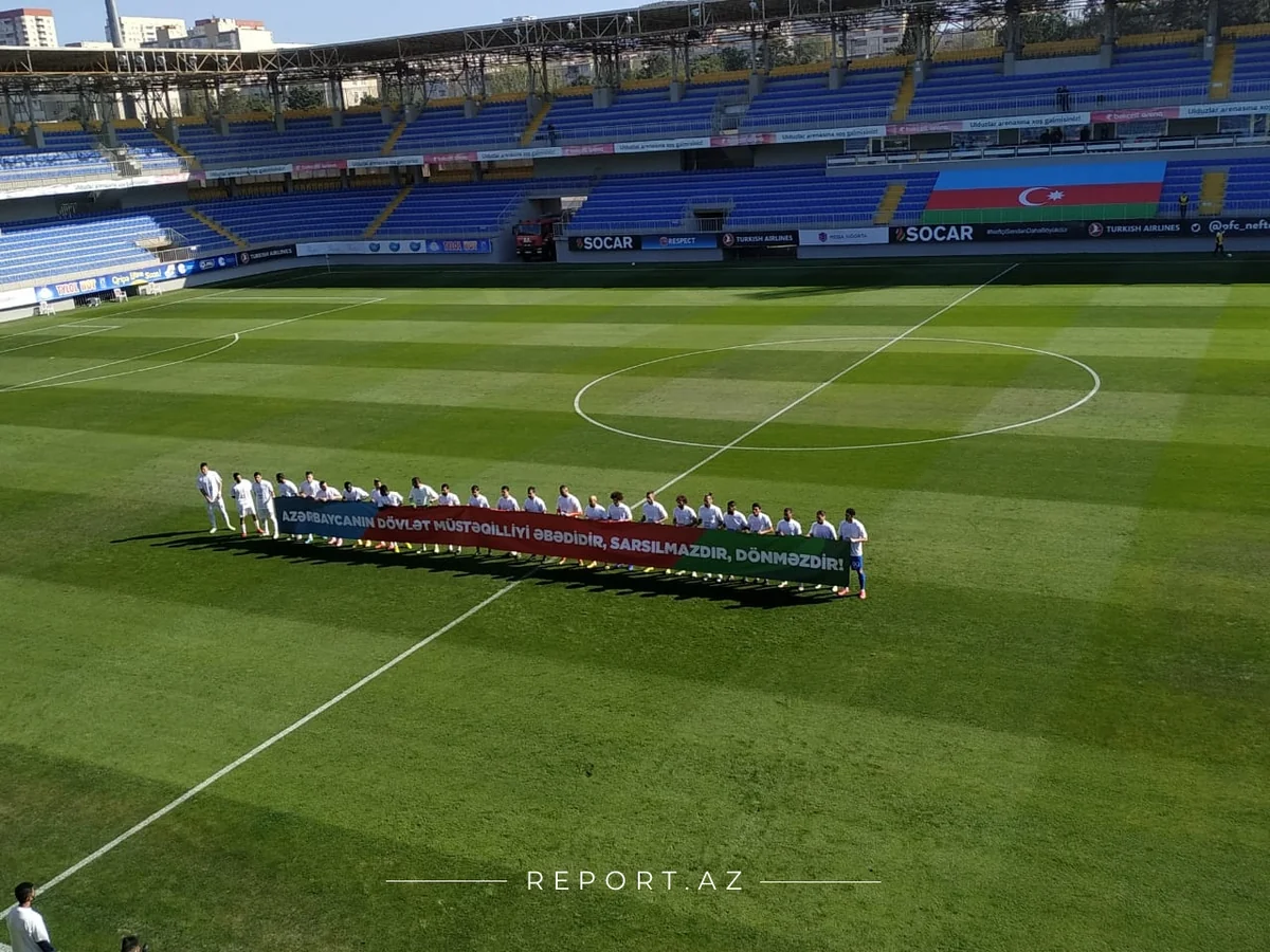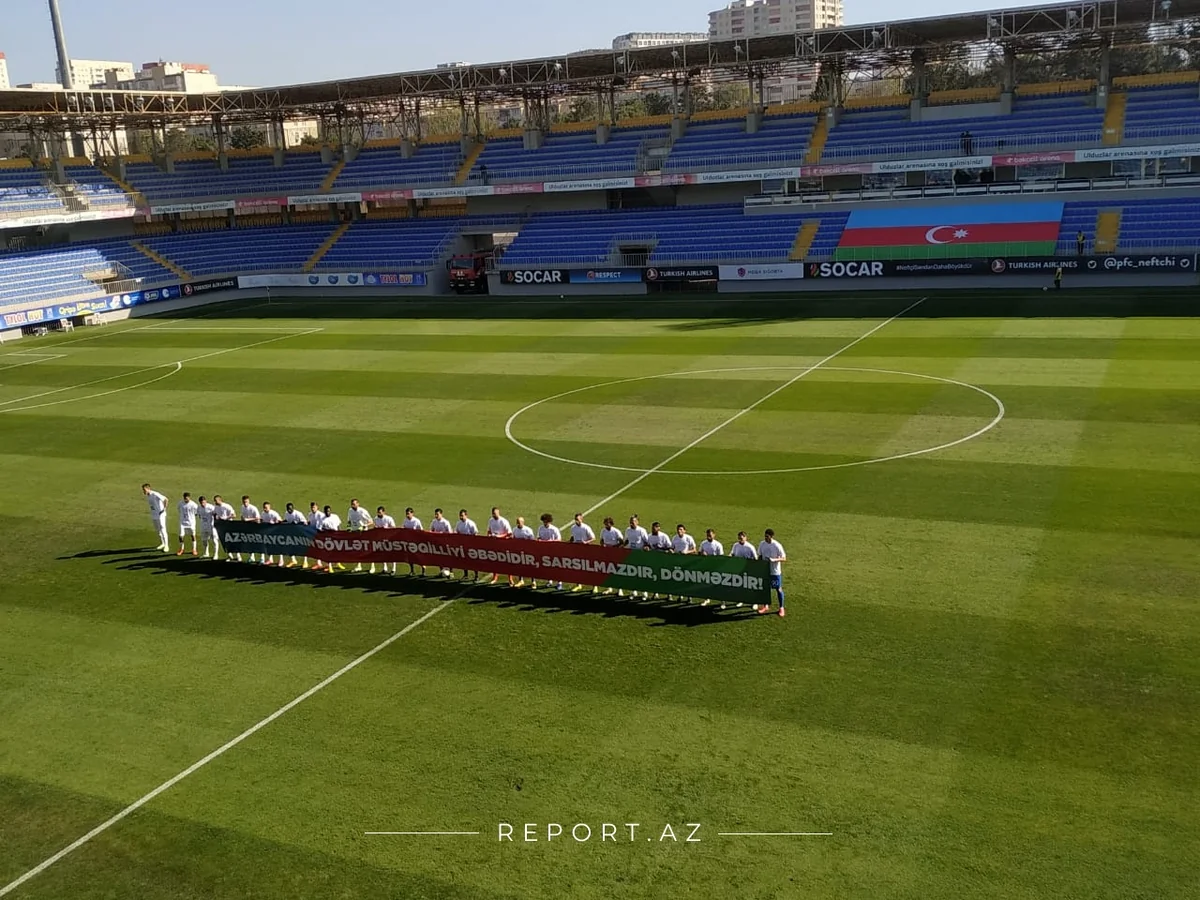 Футбольные команды "Нефтчи" и "Сабах" в матче тура Премьер-лиги Азербайджана вышли на поле с совместной панкартой.