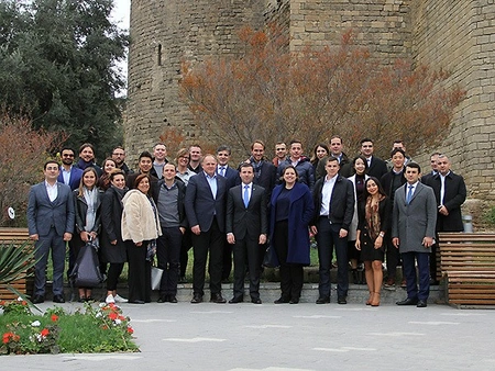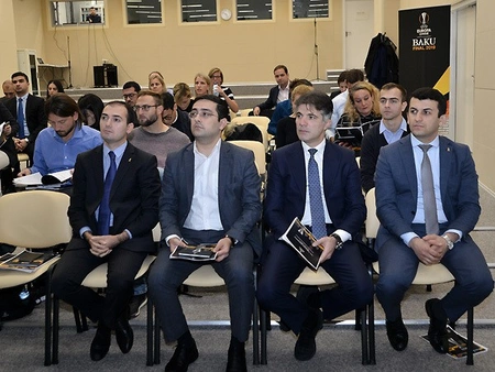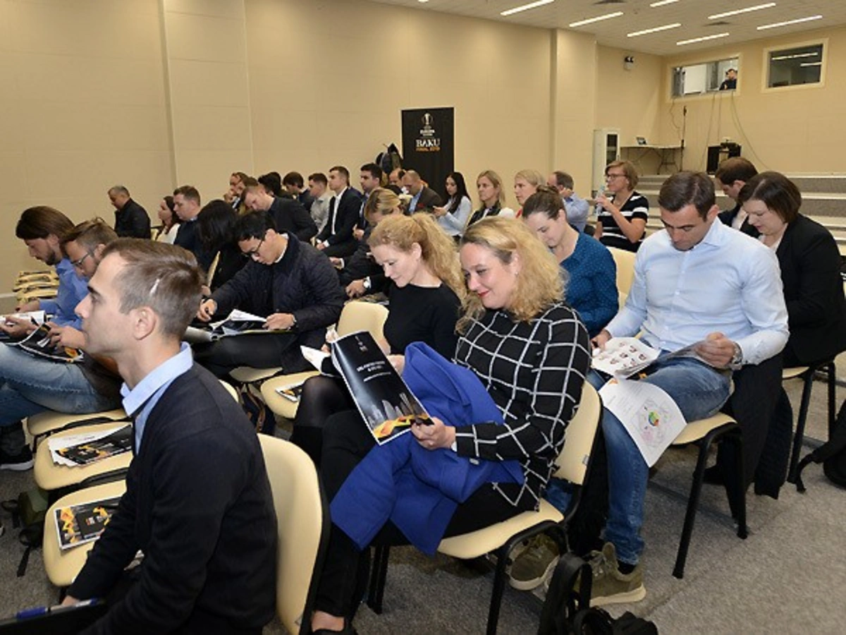 Состоялись выступления менеджера проекта Лиги Европы Андреаса Шара, заместителя генсека АФФА Сархана Гаджиева, завотделом маркетинга и спонсорства Турала Пириева. Затем гости осмотрели территорию стадиона.