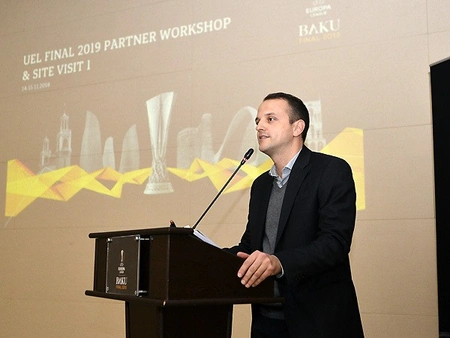 Баку. 16 ноября. REPORT.AZ/ В связи с предстоящей 29 мая 2019 года финальной встречей Лиги Европы УЕФА, которая состоится на Бакинском олимпийском стадионе, продолжаются визиты делегаций в Азербайджан.