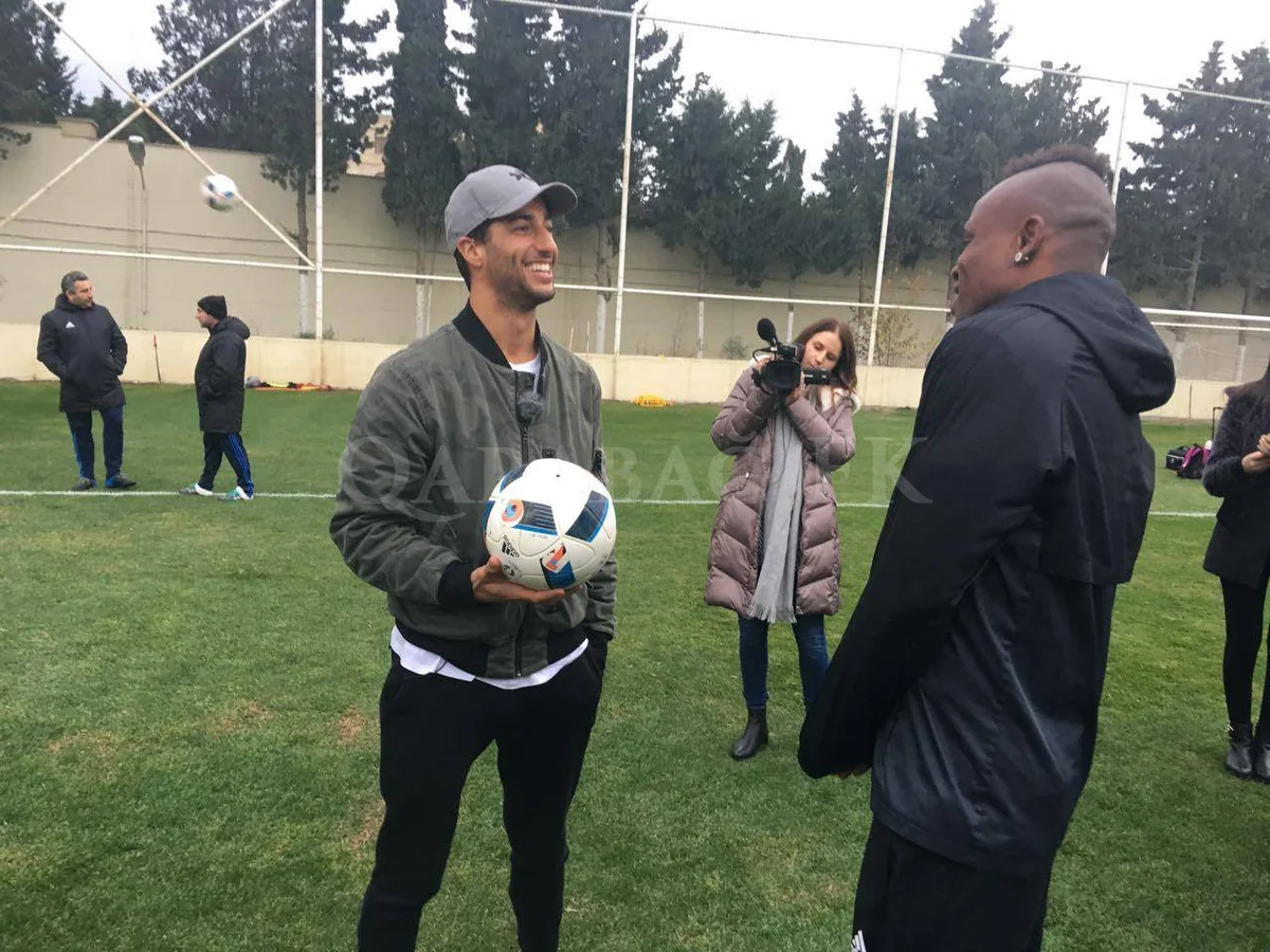 После знакомства, главный тренер Гурбан Гурбанов вручил австралийскому пилоту форму со своим именем. Затем Риккардо подарил главному тренеру свою обувь с автографом.