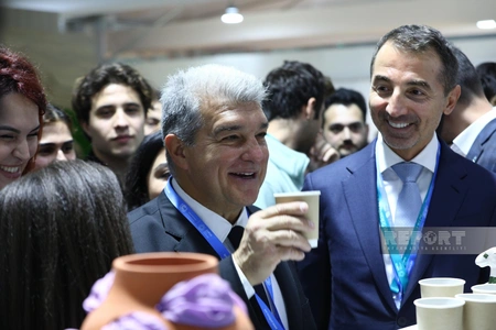 Как сообщает Report, Лапорта ознакомился с павильонами в Голубой зоне и пообщался с участниками конференции.